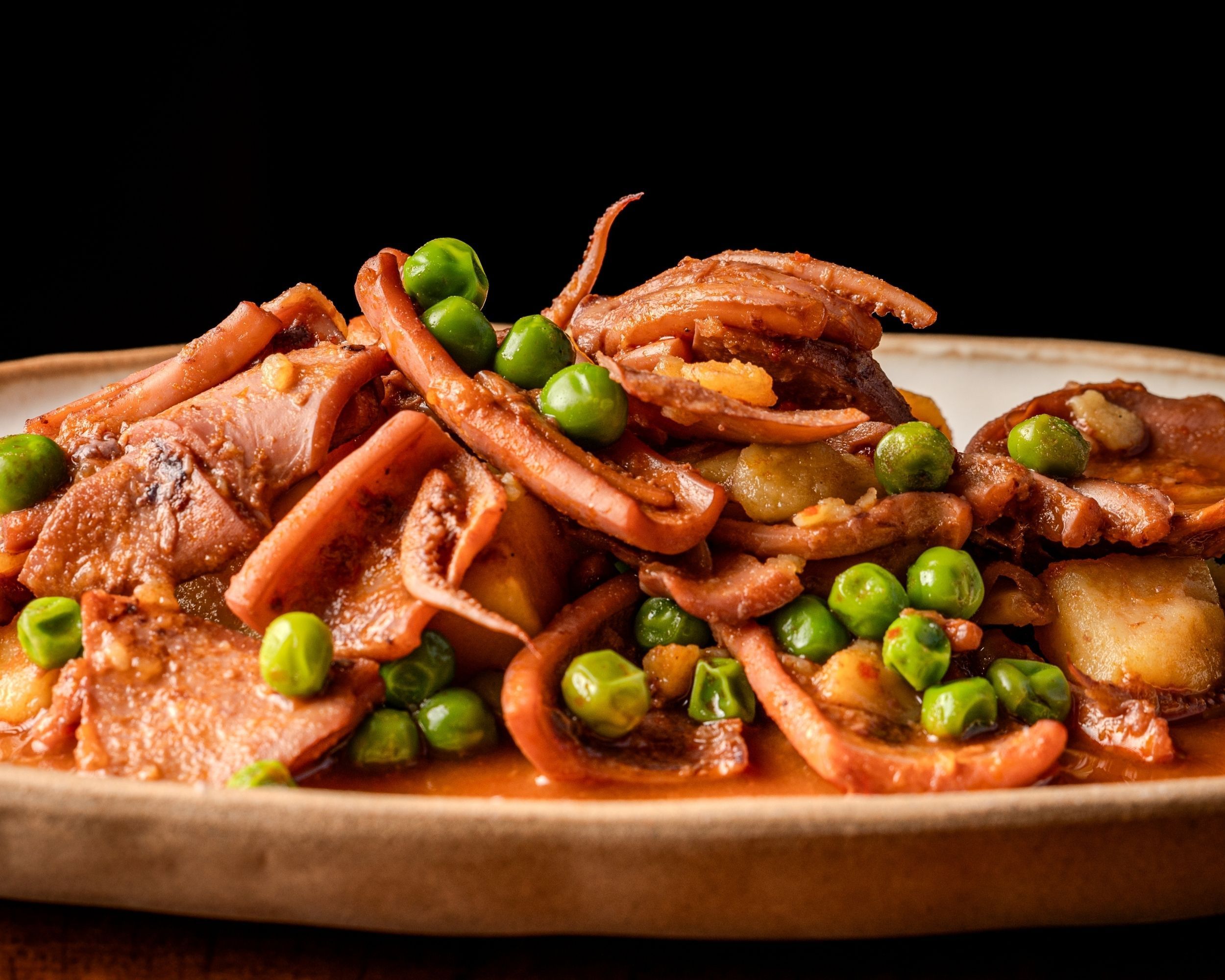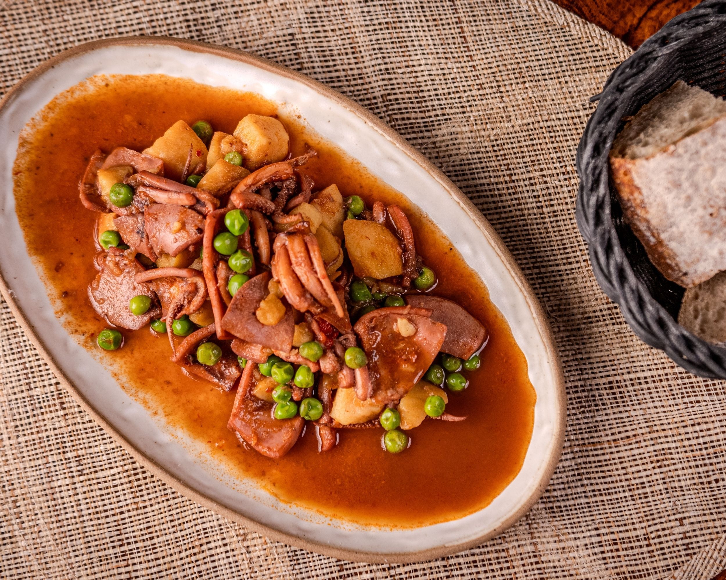 Sabor a costa y a cocina lenta. Nuestro guiso de choupa, caldoso y aromático, reconforta con patata melosa y salsa para disfrutar sin prisa.